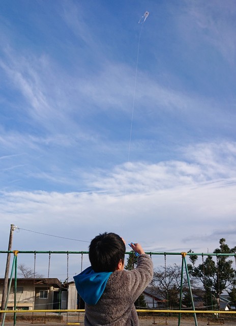 たこひもがなくなるくらい、空高くあがりました。