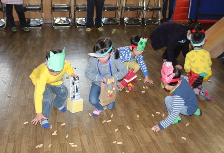 昨日は節分だったのでみんなで豆まきをしました。