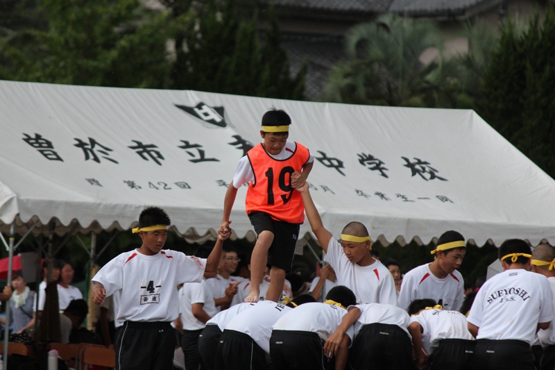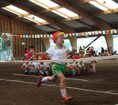 1年生の学年種目では、背中を渡って速さを競う競技の代表に