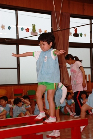 平均台や体操をしましたが、てんてんがなんとか平均台を