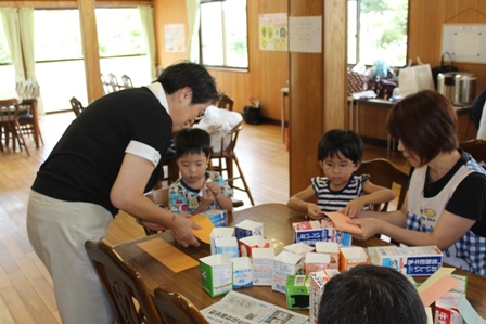 毎年恒例となり子どもたちも覚えていて、牛乳パックを