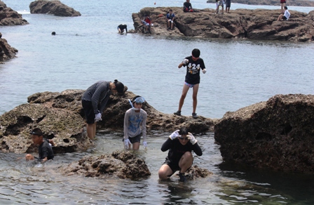 砂浜には目もくれず、裏側の磯場に移動し、岩づたいに
