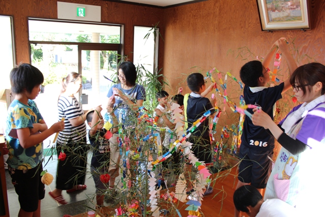 先日、みんなんで願い事を短冊に書いて飾り付けをしました。