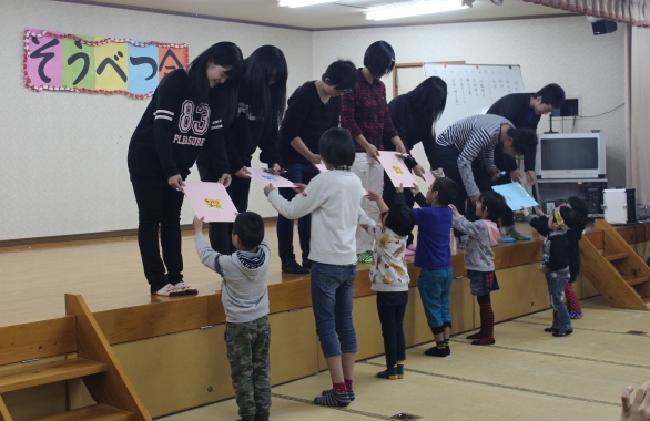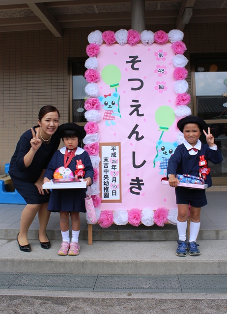 はくちゃんとみつえちゃんが立派に卒業証書を