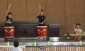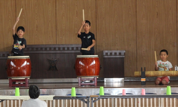 支援クラスの3人が太鼓を披露しました。