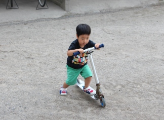 こうちゃんがこの夏でキックボードに何とか乗れるように