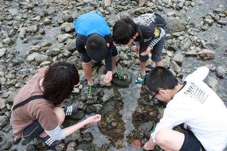 薄曇りの天気でしたが、磯で貝や小魚を探したり